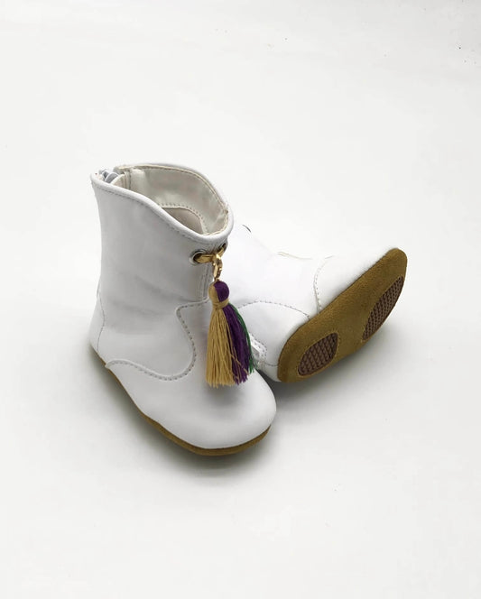 White Marching Mardi Gras Boot - Crib Shoes