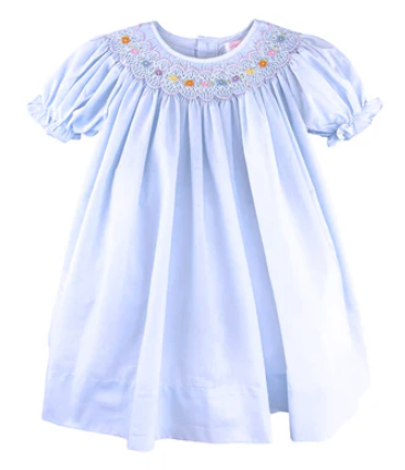 5364/5264 Dress/Bloomer Set - Blue - Smocked Flowers with Pearl