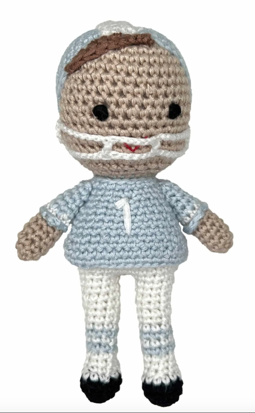 Bamboo Football Player Rattle 5" Blue/White