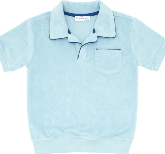Made with premium french terry, this cozy boy's polo shirt will seamlessly take your little from post-swim to playtime. Featuring a classic collar, with new contrast piping details and a front pocket, this versatile shirt will quickly become a favorite they'll never want to take off.