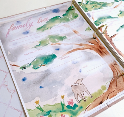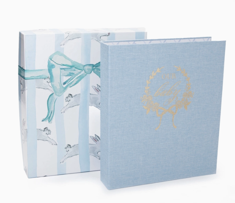 Include a linen bound exterior cover with gold foil stamping. Interior pages are gender specific (blue or pink) and include pages for each of the season's to capture all of those important "baby's first" moments.