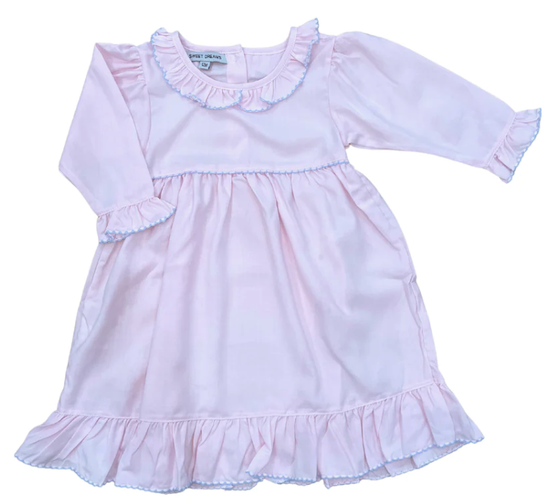 Blue Picot Trim Long sleeve Gown