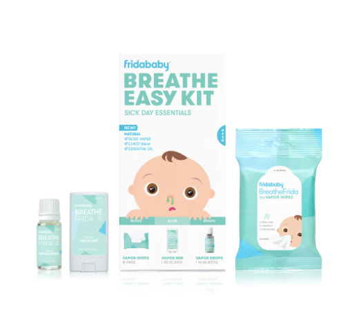 Baby all stuffed up? The Breathe Easy Kit has everything you need to rid your little ones nose of boogers, mucus and snot. BreatheFrida Vapor Wipes clean up boogies on-the-go, while the organic Vapor Rub is no  mess chest balm to help baby breathe easy. Plus the organic Vapor Drops soothe with natural essential oils that are safe for sensitive skin.For 3+ MonthsWhat's Inside? 12 Vapor Wipes, 1 0.5 oz Vapor Rub stick, 1 9.5 ml Vapor Drops Bottle