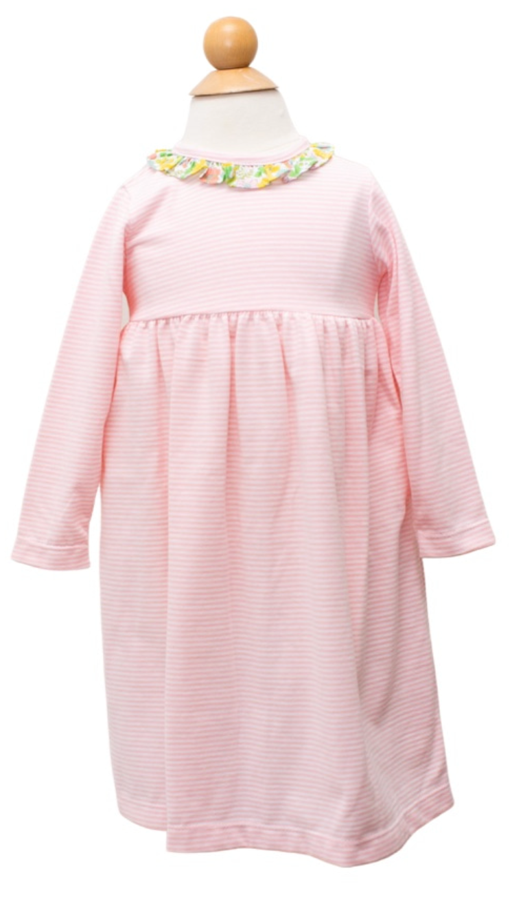 Cici Dress - Pink Candy Stripe W/ Honeycrisp Floral