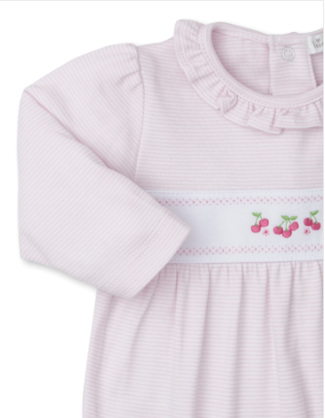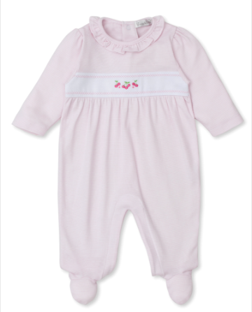 Kissy Kissy's Pink Classic Treasures footie is designed to keep baby cute, comfortable, and cozy. Made from the softest Pima cotton for ultimate comfort and featuring sweet cherries on the front.