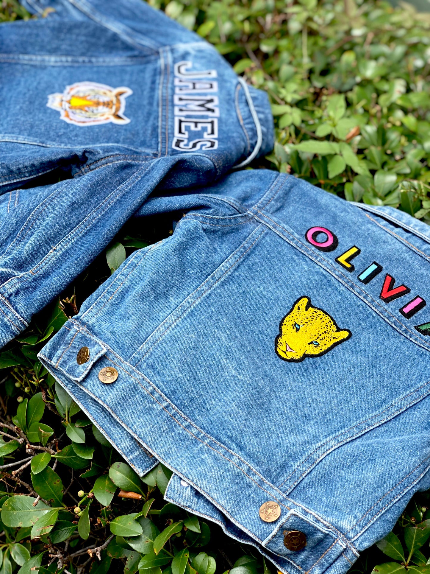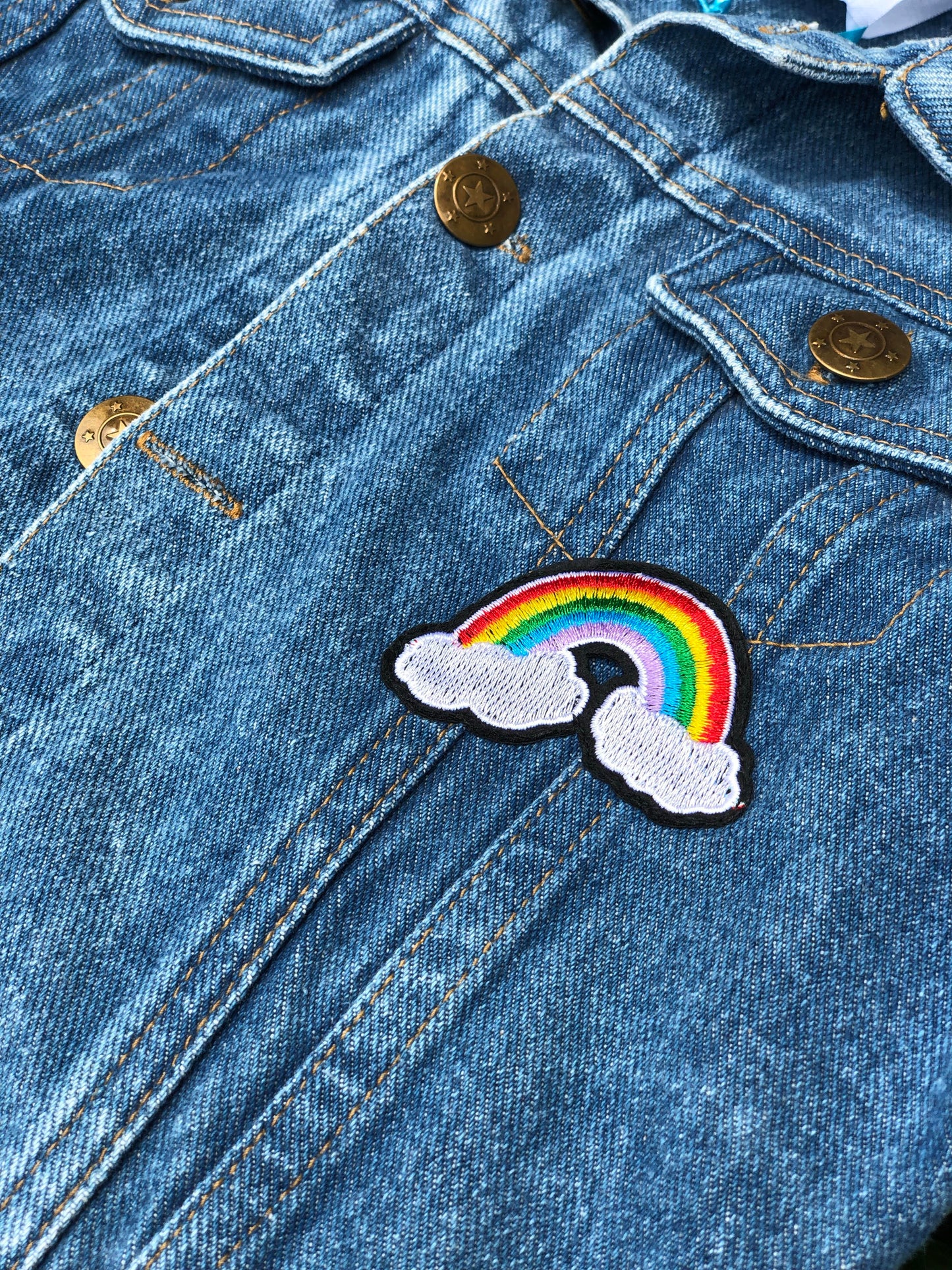 CUSTOM DENIM JACKET- Basic Rainbow Letters NAME ONLY