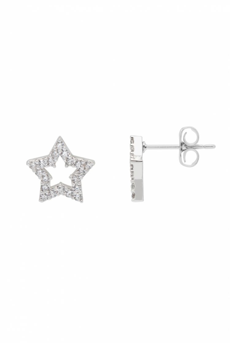 CZ Open Star Earrings Silver Plated