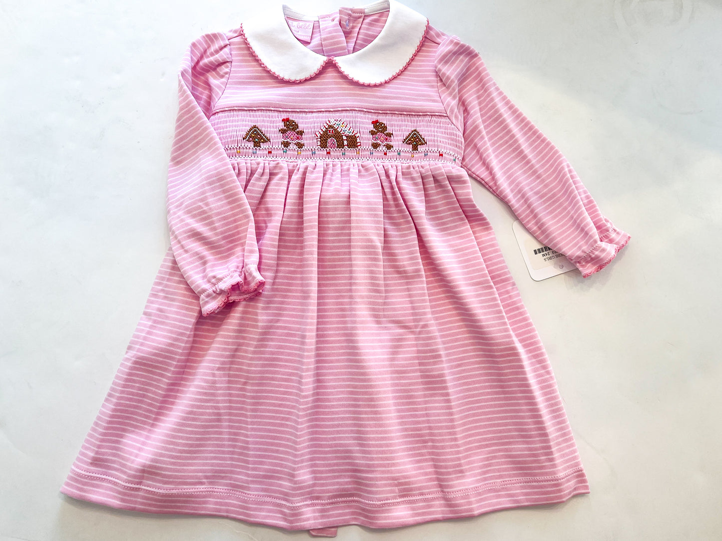 Gingerbread L/S Dress - Pink/White Stripe