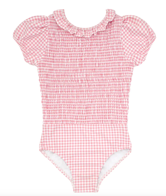 This one piece incorporates beloved details from your all-time favorites — a smocked torso for comfort, a puff cap sleeve for coverage and a soft ruffle neckline make this a go-to. it's the perfect play-all-day suit your little one will love as much as you do.