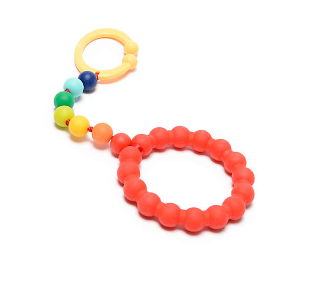 When you have a new baby, it can be challenging to be on the go running even a short list of errands. Getting everything done while keeping your baby occupied and happy is a hard task. Luckily, we carry beaded teething toys that attach to your stroller or playpen to keep your child busy while you cross tasks off your list. The silicone teething toys are perfect for your teething baby to chew on because they are made from safe rubber with no BPA, lead or metals.The baby stroller toy attachment is made from little silicone beads that are attached to a plastic clip that latches on to any carrier. Your baby will be able to fuel his or her curiosity by playing with a teething playpen toy and chewing on it to comfort sore gums. Choose from soft teethers in a variety of colors to match your stroller or playset. Some of our toys even glow in the dark to further stimulate your child. Order our baby teething toys to make running errands easier by giving your baby a fun beads toy to touch, tug and chew on!