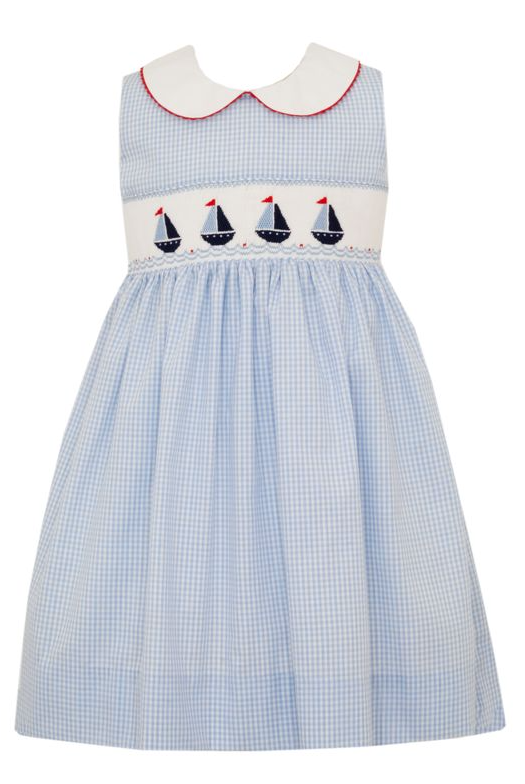 Light Blue Gingham Sailboat Sleeveless Dress