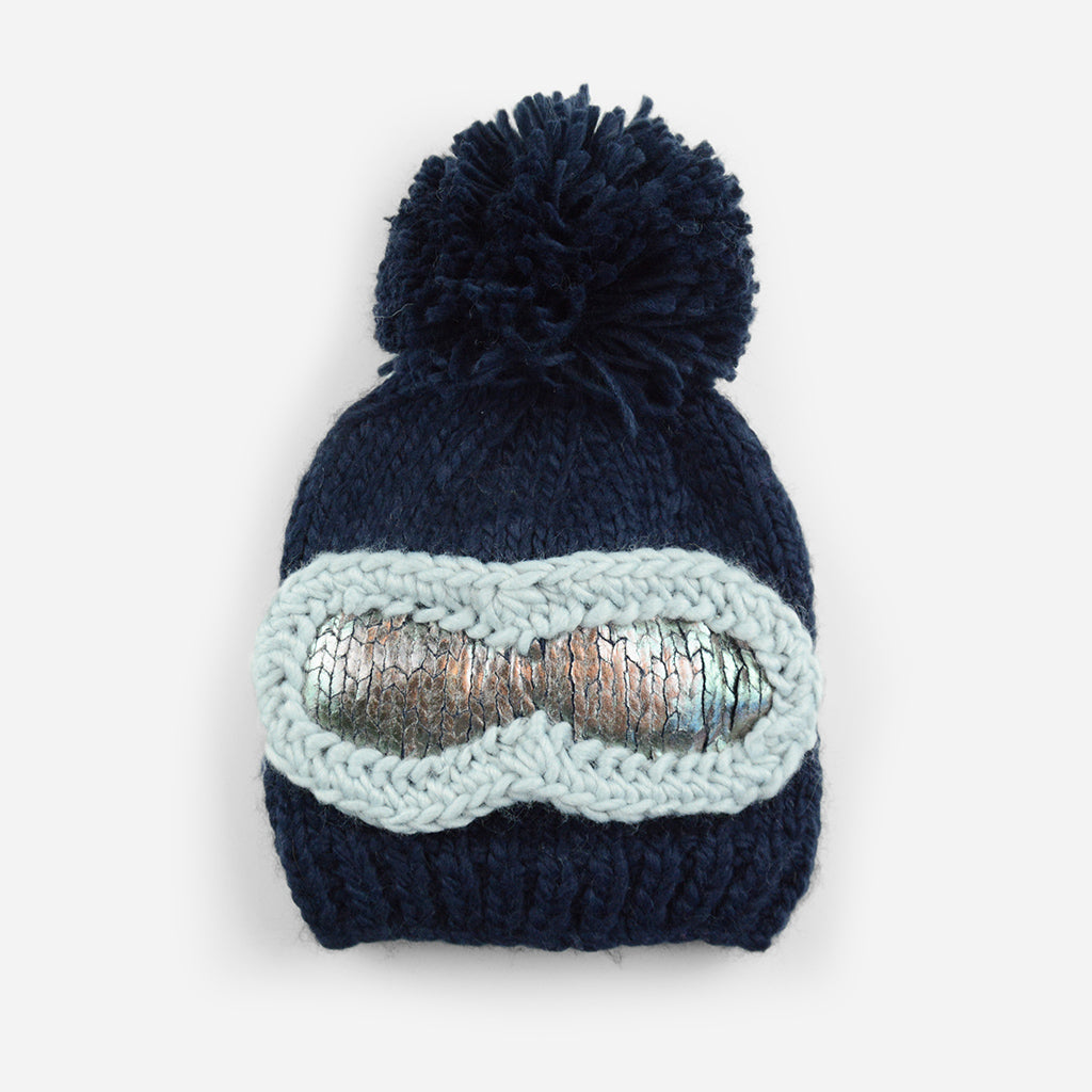 Navy Knit Hat With Ski Goggles
