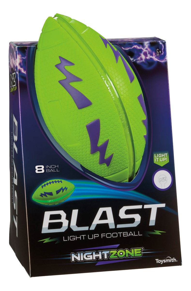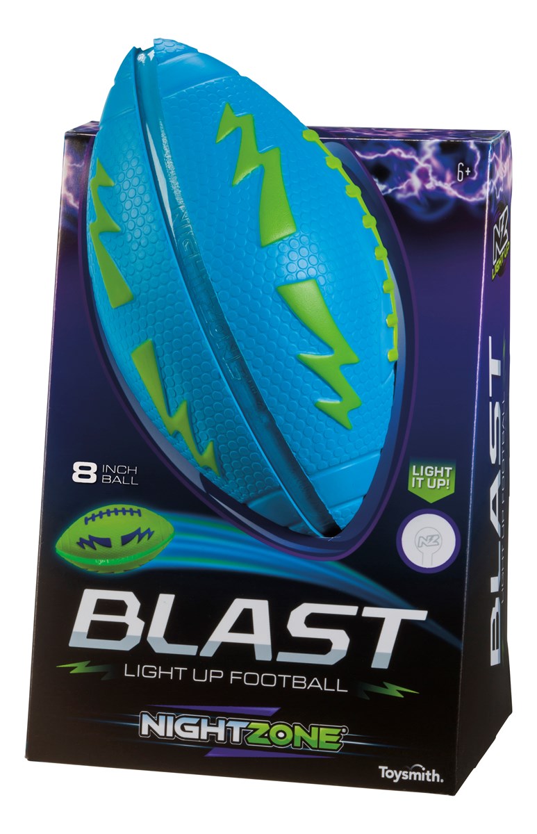 This 8" foam football glows super bright with Lightband technology. Requires two CR1220 batteries (included). 6yr+
