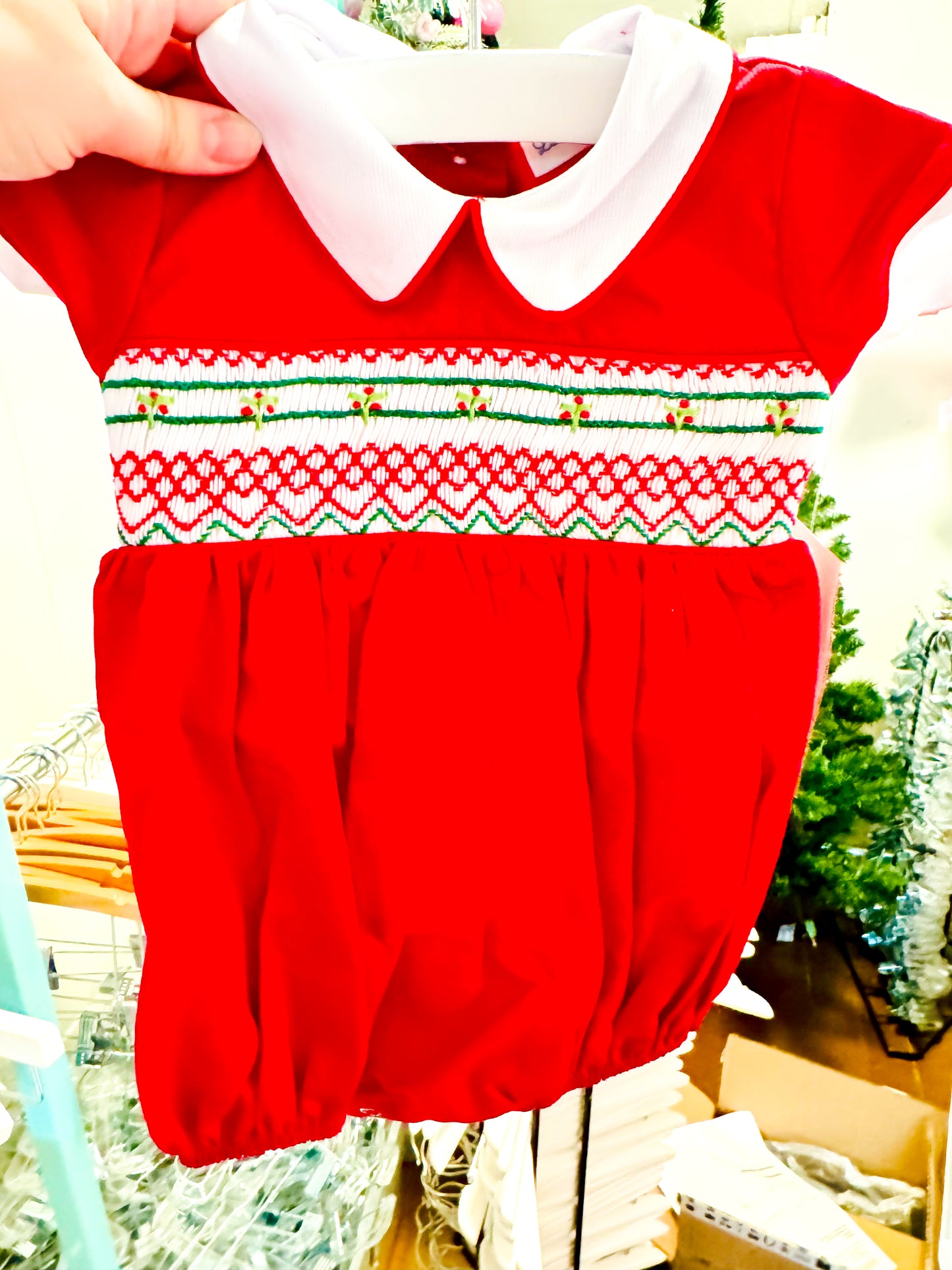 Noah Red Smocked Christmas Bubble