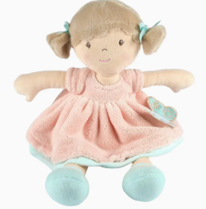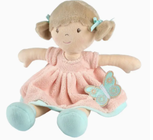Pia is a soft doll from the Butterfly kids range in her bright peach plush dress. Her lovely soft dress has a beautiful 3D butterfly on the side with matching pastel shoes and ribbons in her hair.