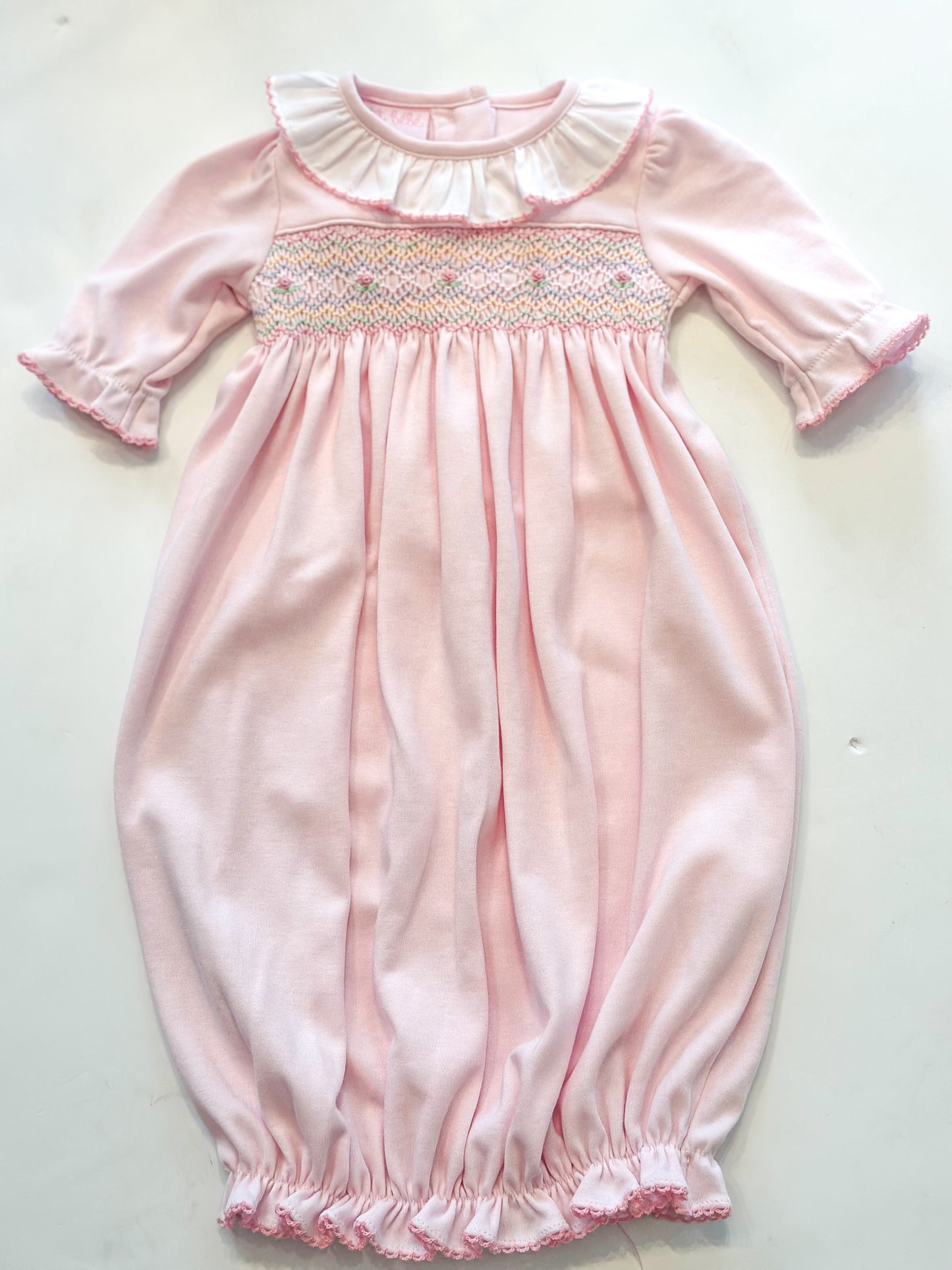 Riley - Pink Knit - Girl's Sac w/ pastel smocking