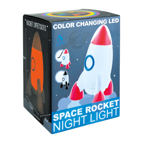 Blast off! Our space rocket night light delivers the sweetest dreams. This color-changing, battery-operated LED night light features a 15-minute timer option in case you don't want it to light up the sky all night. A great gift for space lovers!