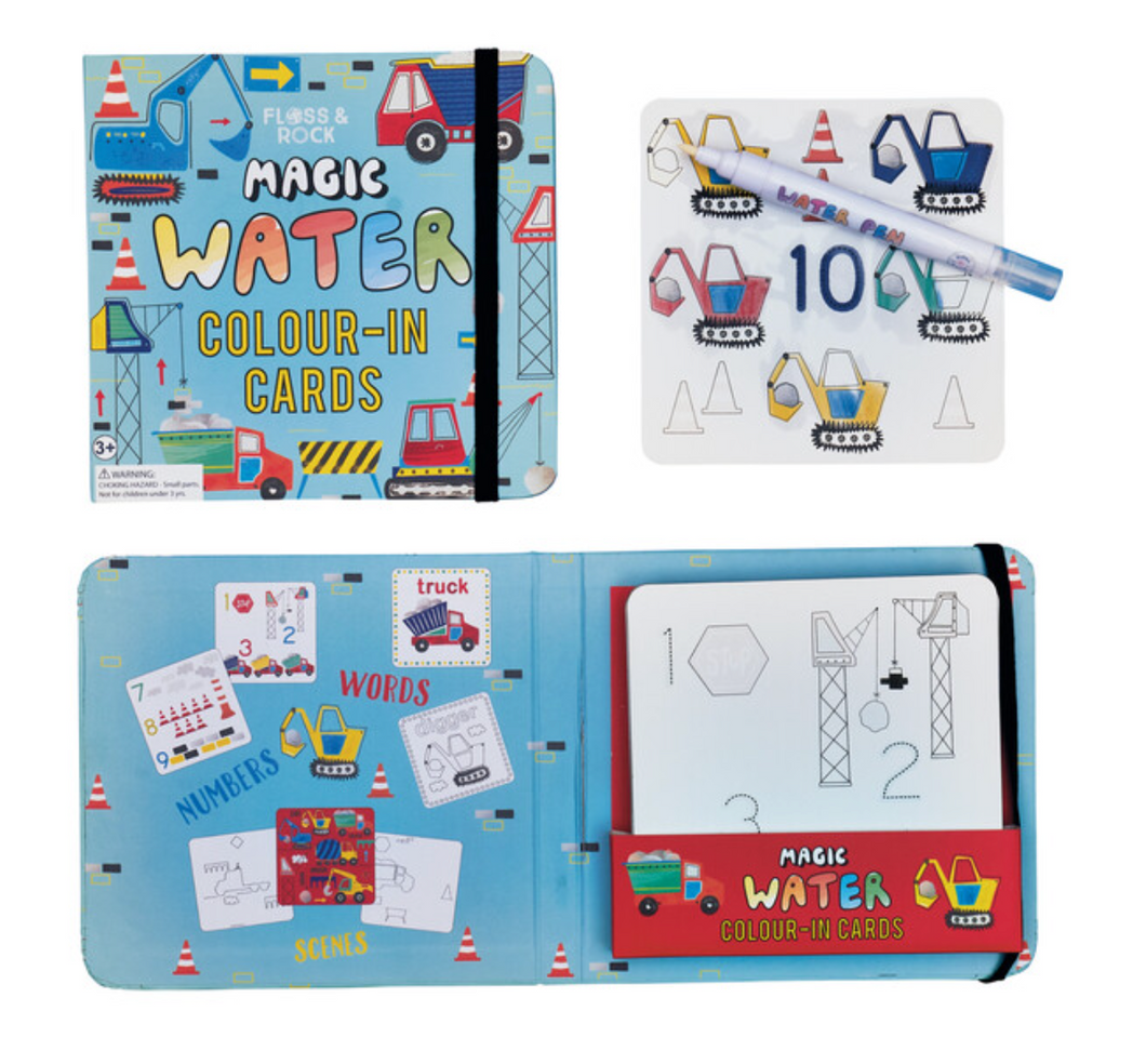 These Magic Water Cards make the most exciting gift and can be used over and over again. Simply fill the pen with water and color in the pictures or follow the outlines to reveal designs, letters and numbers which then slowly disappear. These water cards come in a strong reusable carry case. For ages: 3+ years.